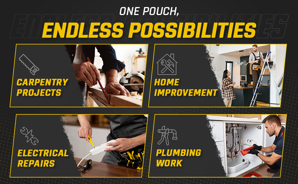 - Pouch can be added to tool belt for extra storage capacity