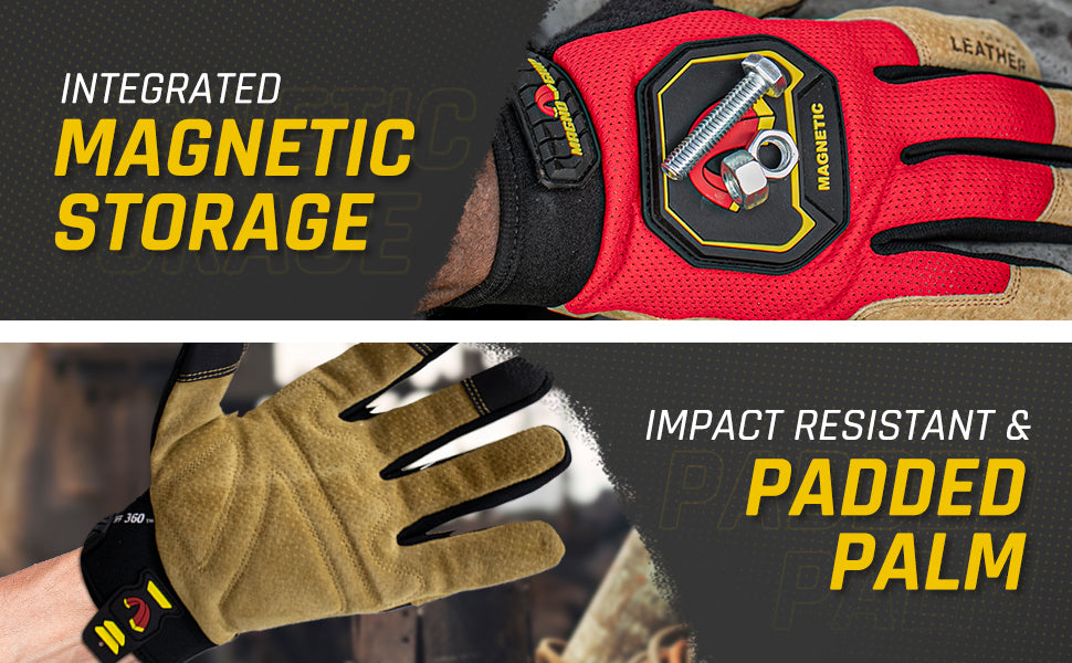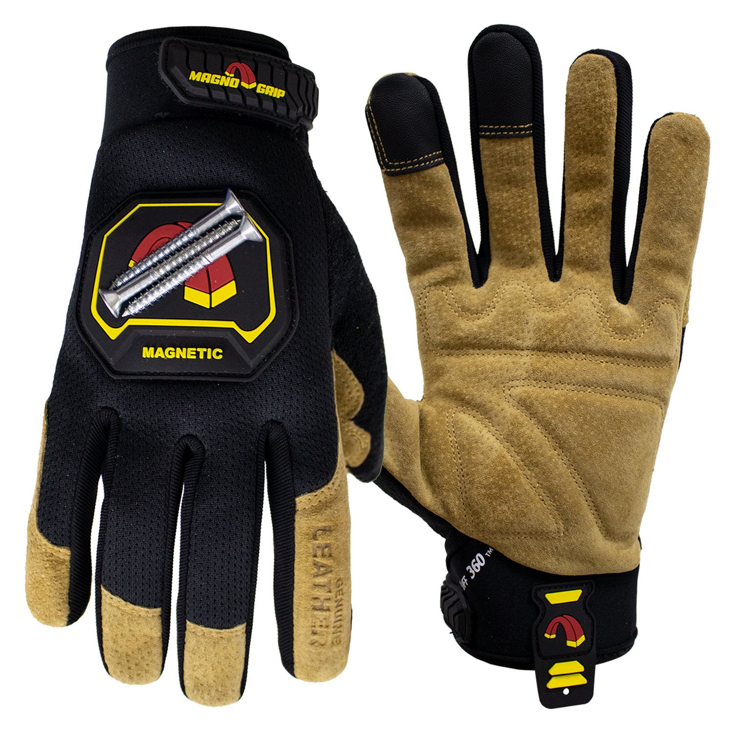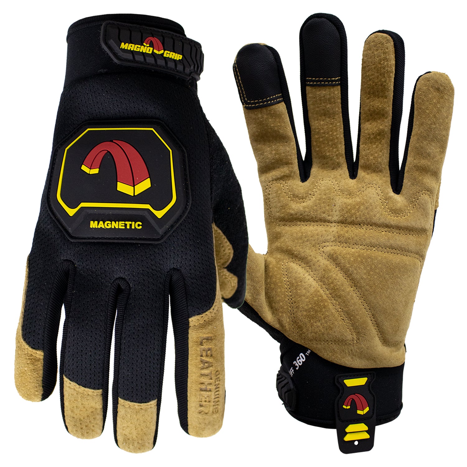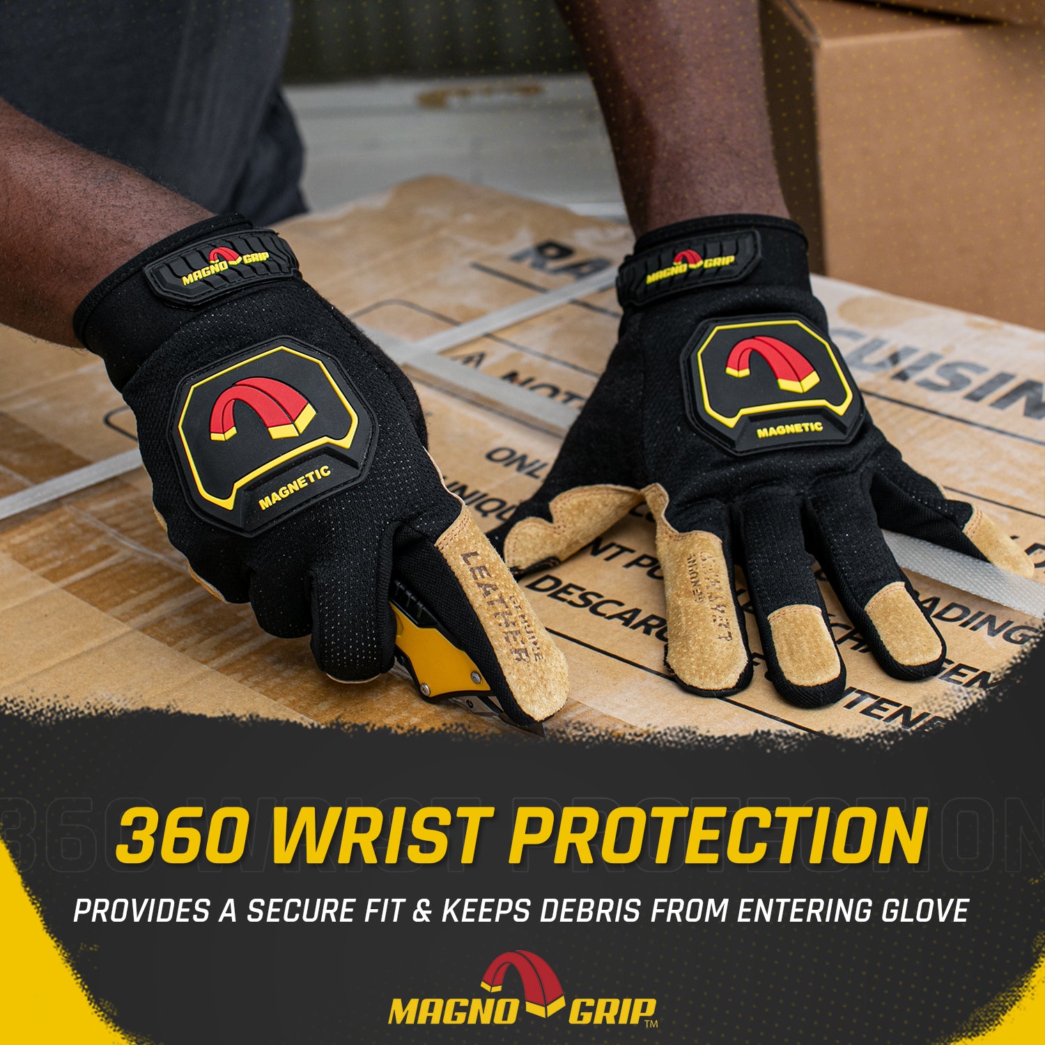 - All-purpose Heavy Duty Hi Dex Leather Magnetic Gloves with Cuff 360 Wrist