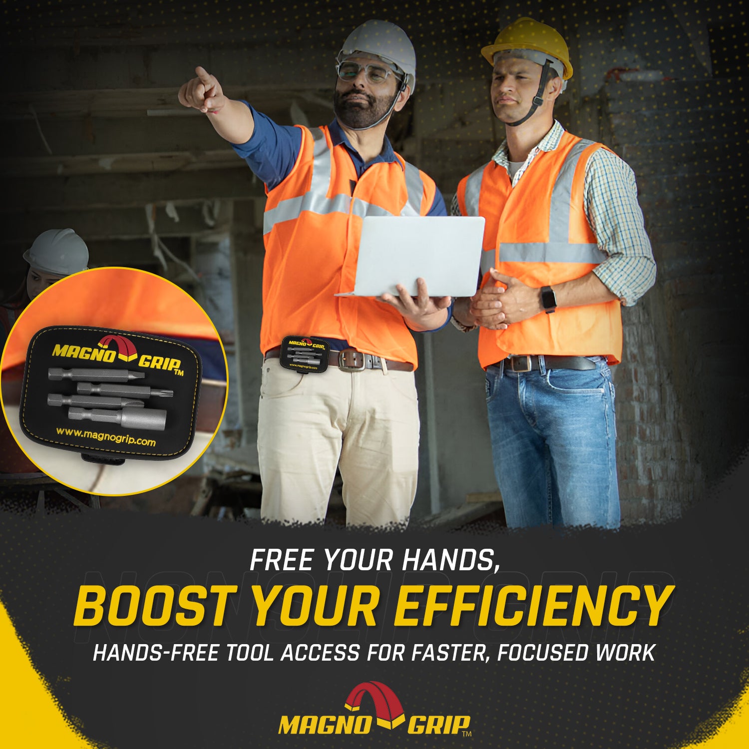 MagnoGrip is a manufacturer of professional duty magnetic work gear. Our magnetic belt clip is built to satisfy the requirements of the Do-It Yourselfer, Carpenter, Electrician, Hobbyist and Professional Tradesman. MagnoGrip’s magnetic belt clip provides a clever solution to the annoying problem of losing your screws, bolts, parts and tools when you need it most!