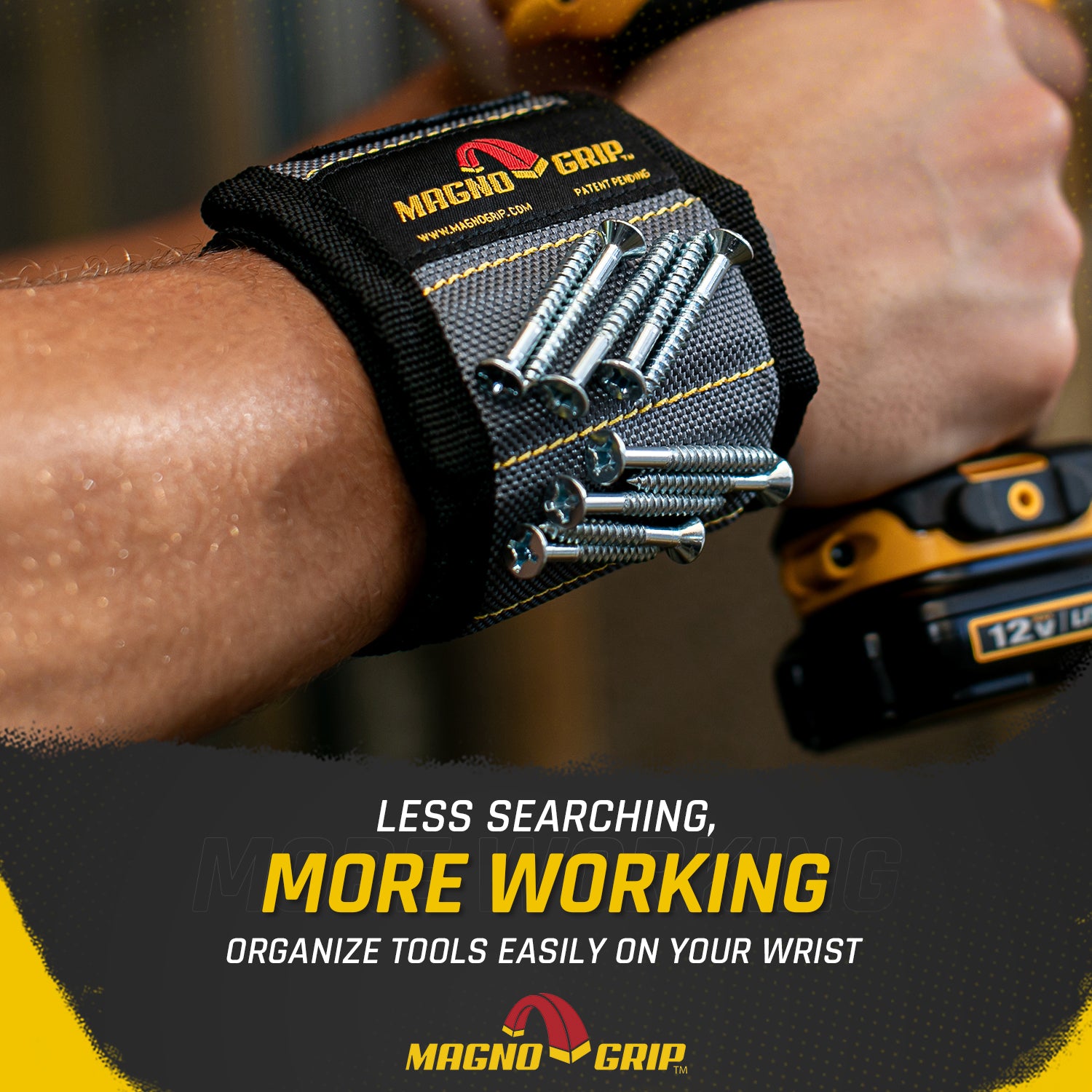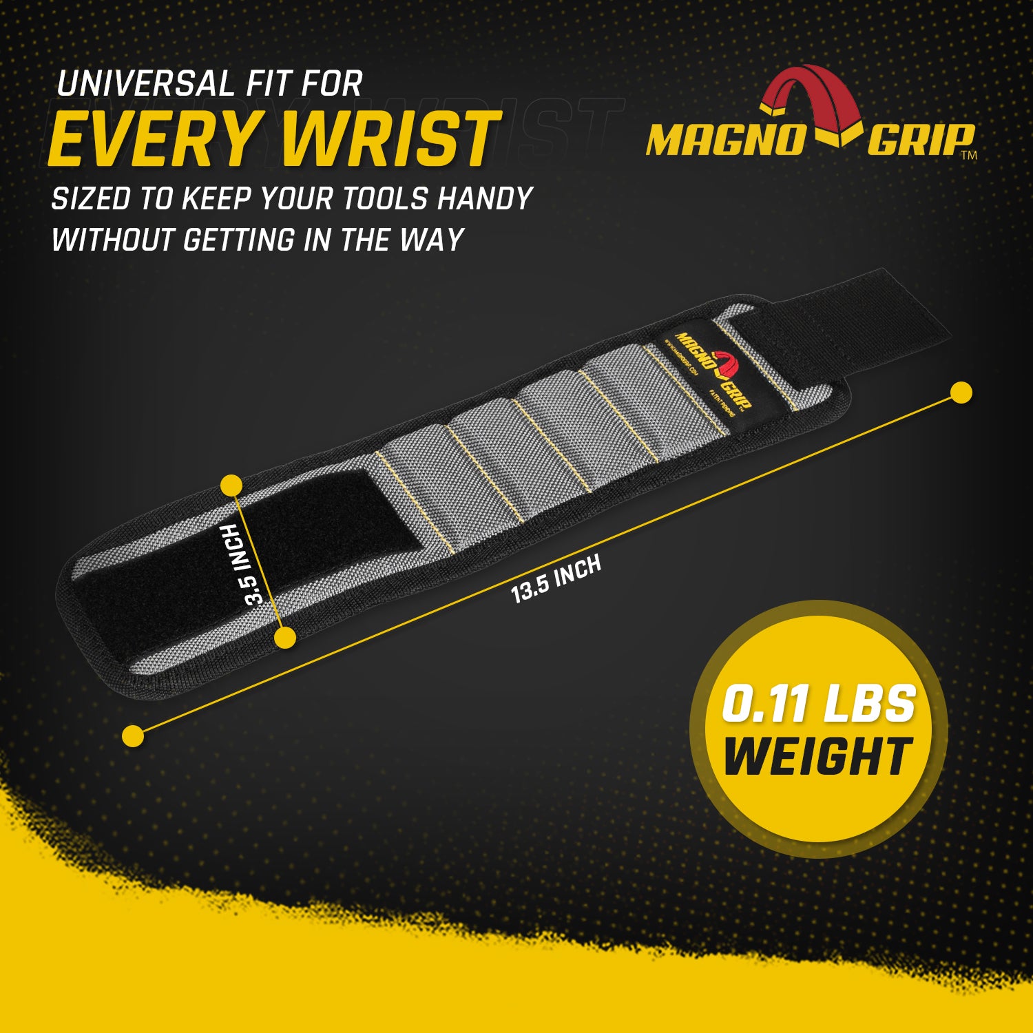 Use the MagnoGrip Magnetic Wristband to keep tools on your wrist while you work. Ideal for holding nails, drill bits, fasteners, wrenches and small tools. Work on projects without the frustration of losing your tools or your patience! Breathable lightweight design allows you to wear the magnetic wristband all day. Super strong magnets provide therapeutic relief to the wrist. One size fits all.