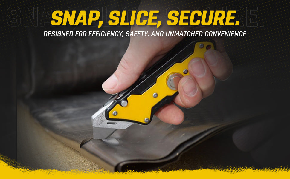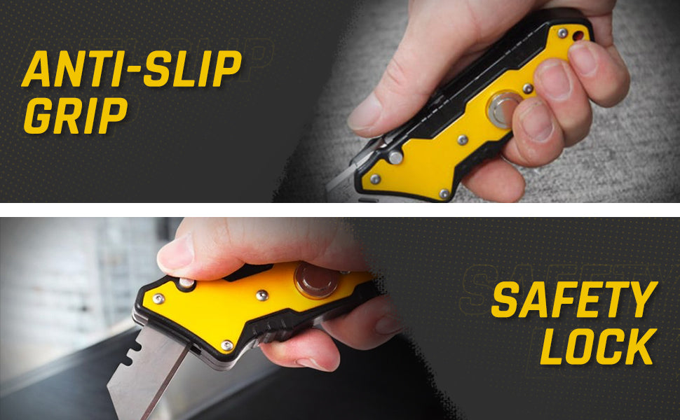- Utility knife’s built-in magnet allows users to attach the knife to any metal surface for added convenience