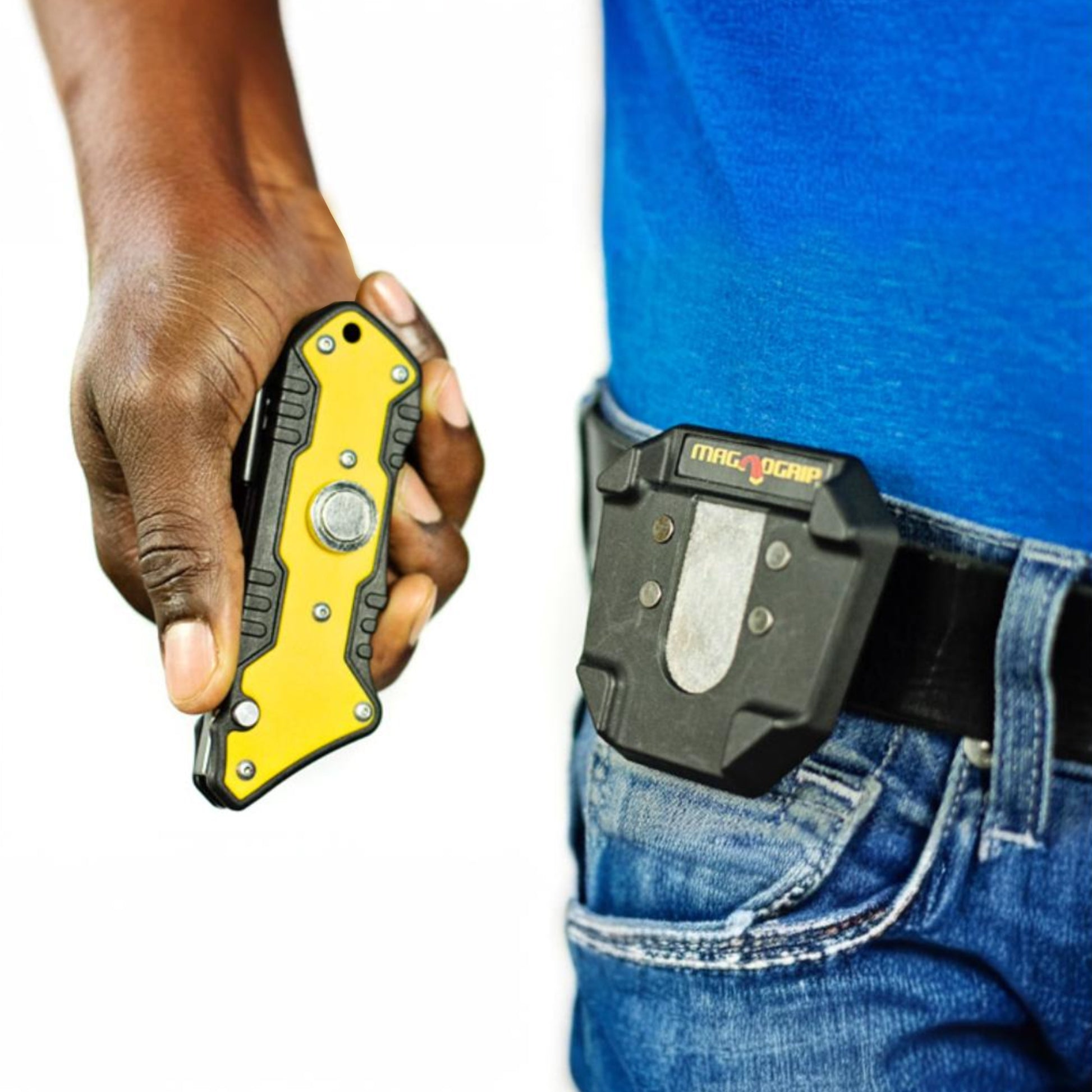 The magnet is not safe to keep the knife on site. But the MagnoGrip Quick Snap Slide Open Utility Knife I like it.